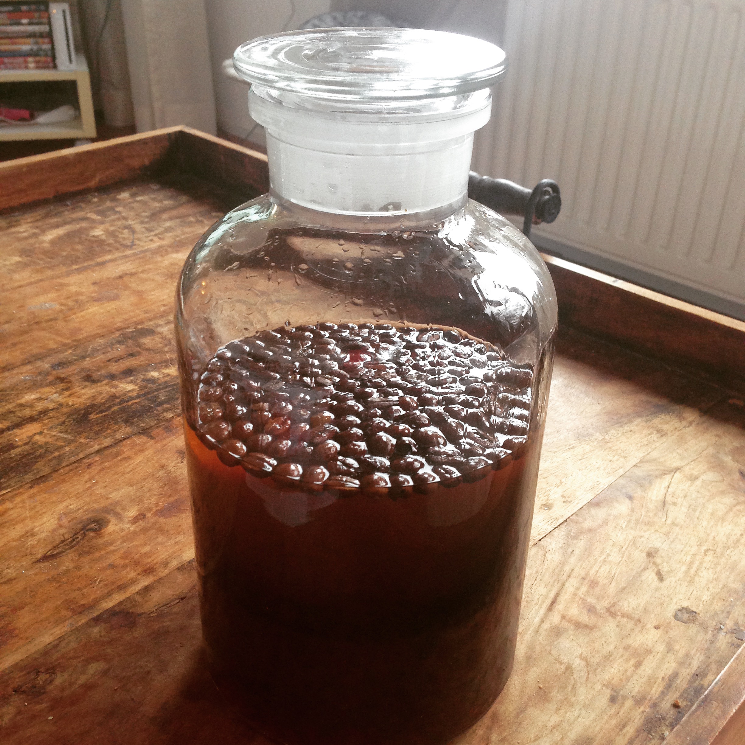3. Na een week of zes de vloeistof zeven en overgieten in afsluitbare flessen.