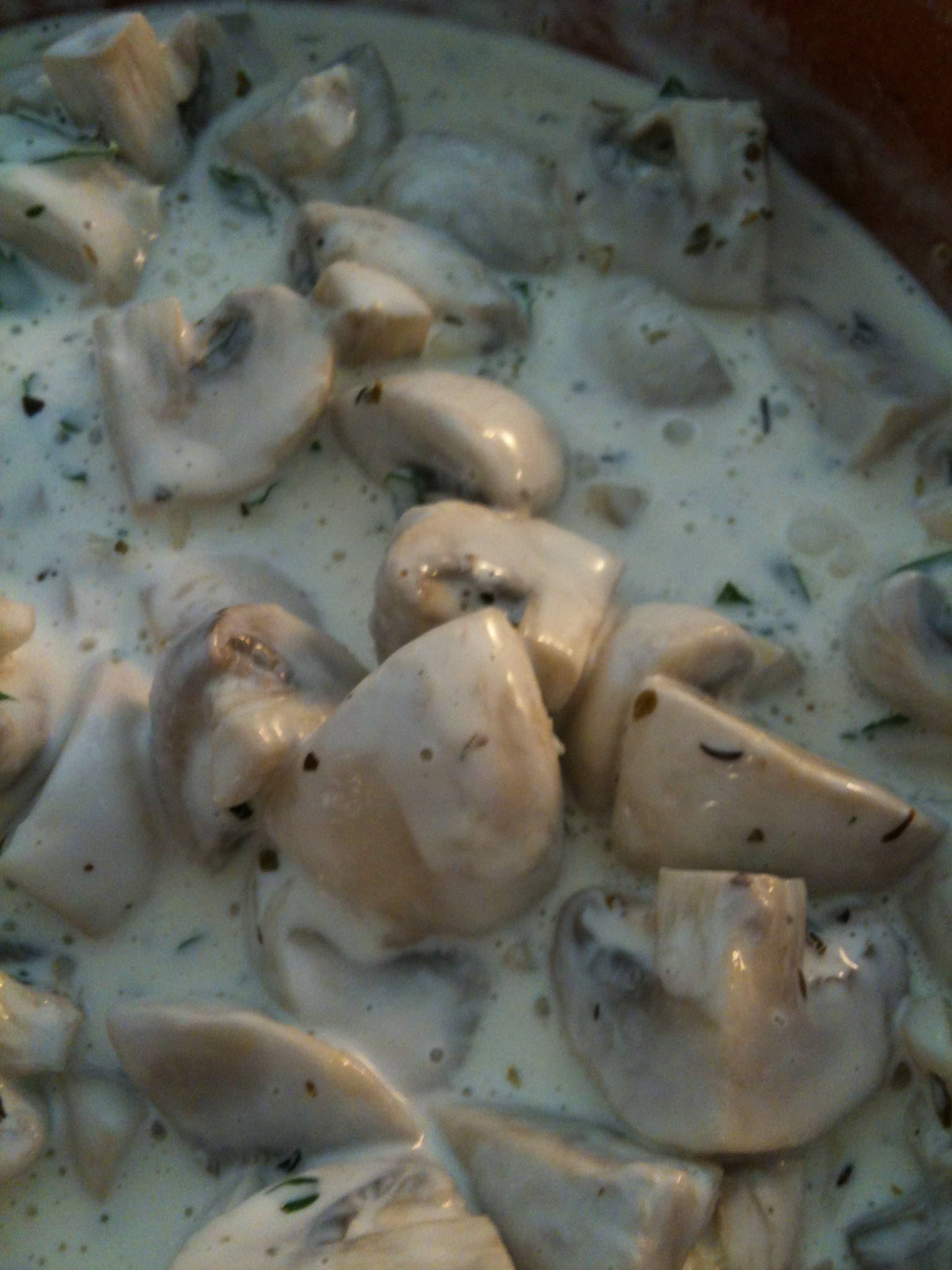 • Witte wijn (± halve fles, ja ik wilde die wijnsmaak hebben en de champignons moeten wel een beetje zwemmen zonder dat het te waterig gaat smaken)