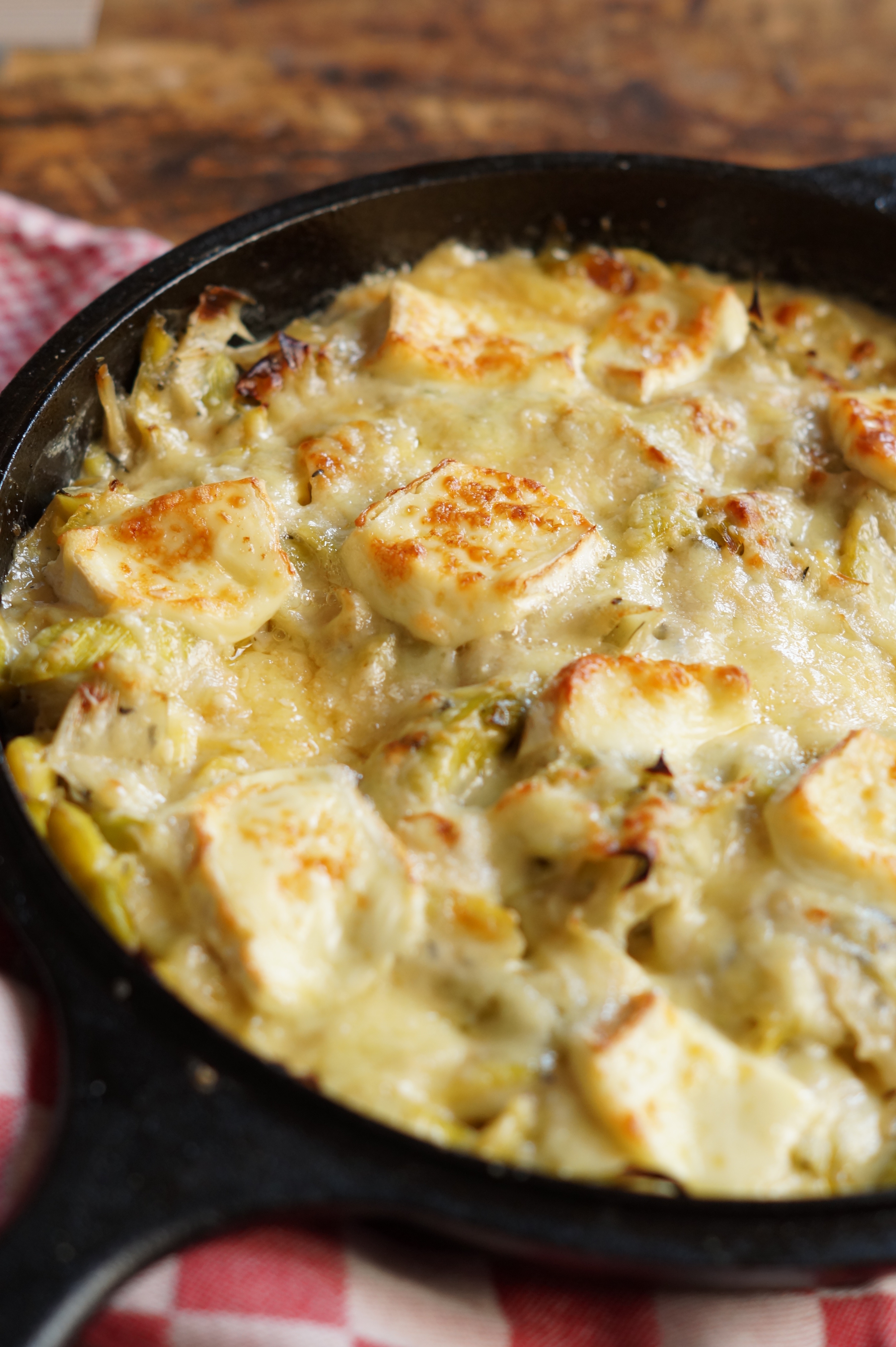 Filed Under: Groenten Tagged With: belegen kaas, brie, kaas, parmezaanse kaas, prei, romig