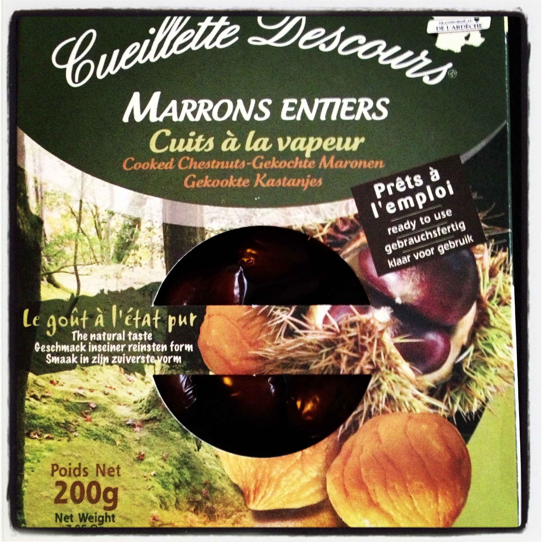 - 500 gram gare kastanjes (koken en ontvellen, of kant en klaar gekookte kastanjes gebruiken)