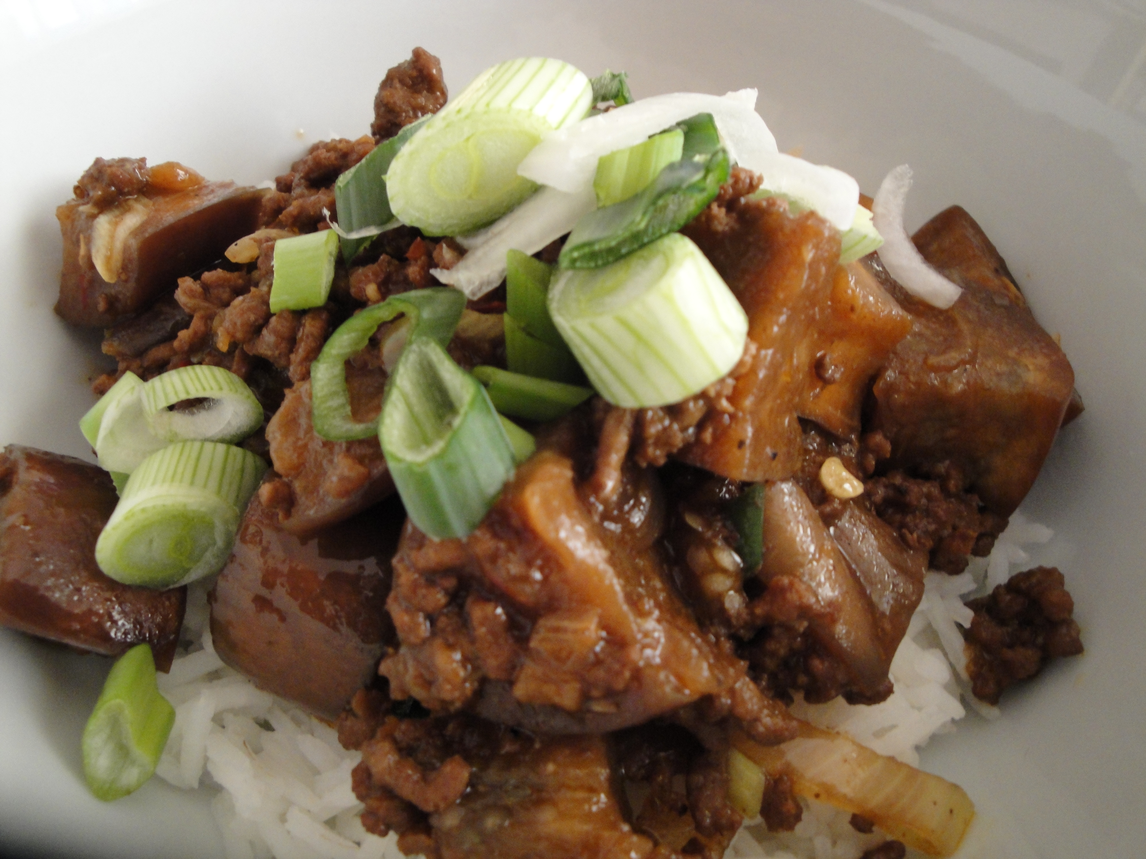NB. Met gewone, westerse aubergines gaat het ook. Als je de aubergine eerst frituurt hoef je die uiteraard alleen nog maar weer op te warmen in de saus. De verhoudingen kun je gerust aanpassen, meer of minder gehakt tov de aubergine, meer chilibonensaus voor de pit. In tegenstelling tot veel andere Chinese gerechten is dit gerecht de volgende dag ook nog erg lekker, zo niet lekkerder.