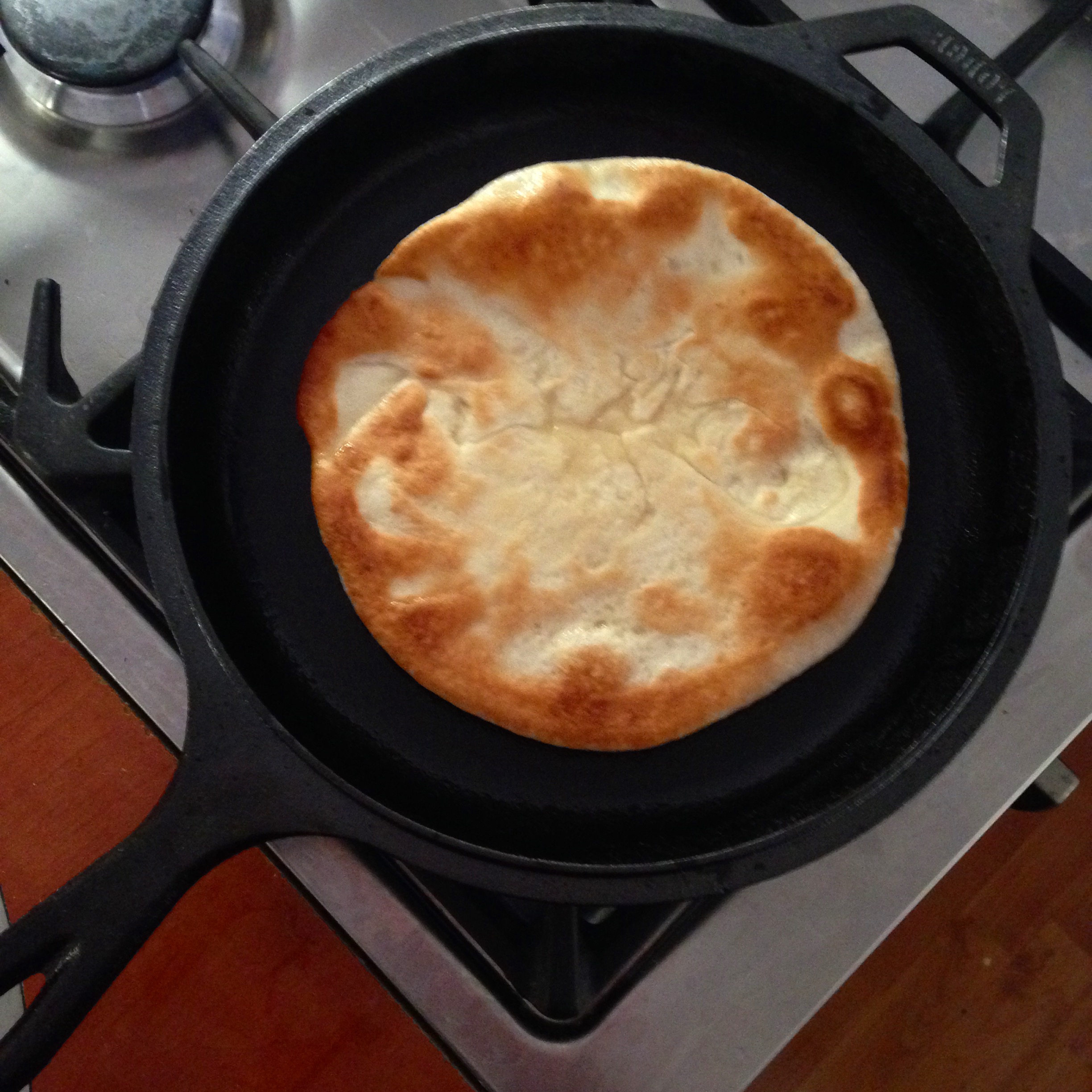 10. Giet een beetje zonnebloemolie in de pan en bak de pita een paar minuten per kant mooi bruin.