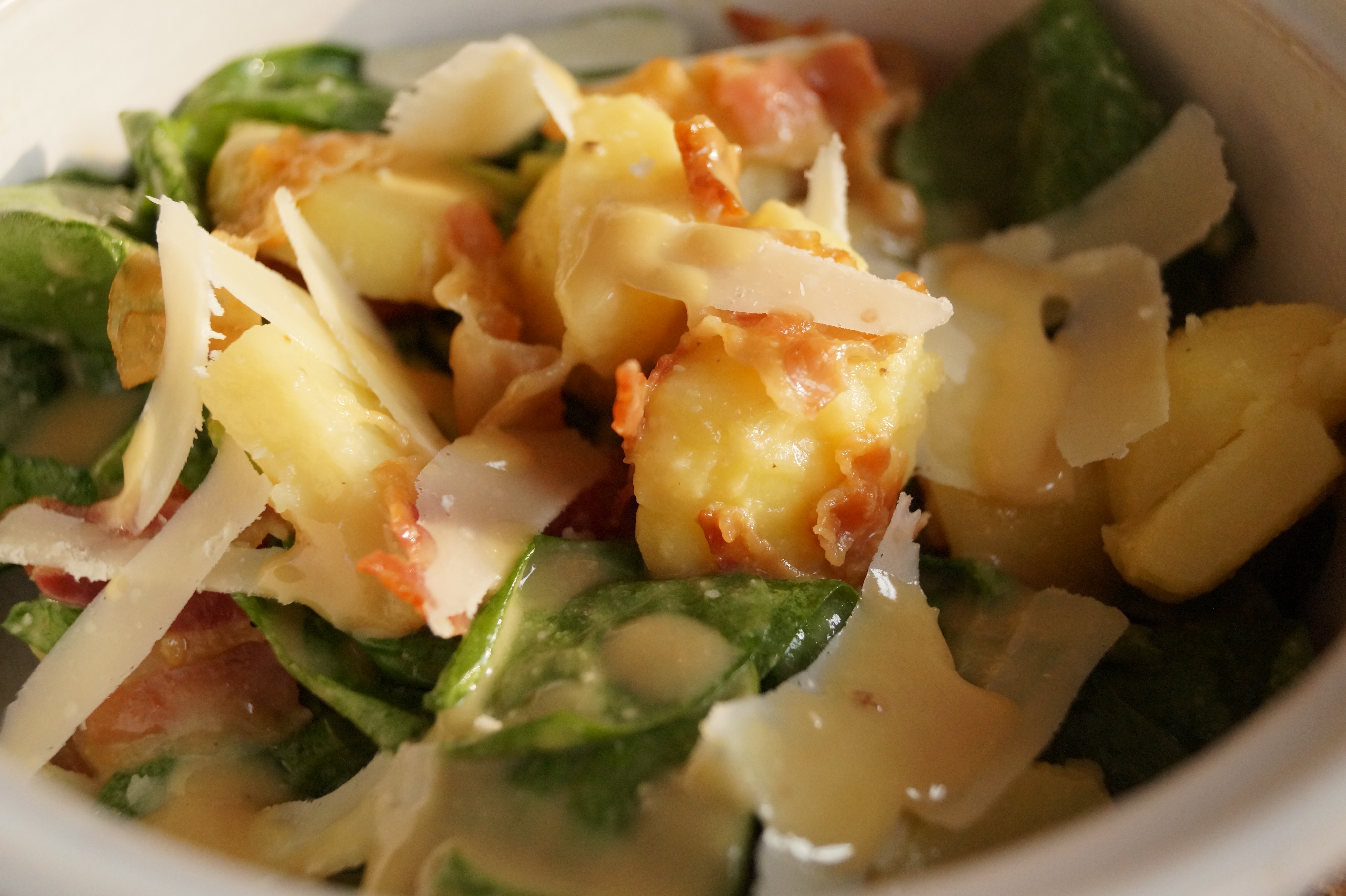 Warme Aardappelsalade met Spinazie, Bacon en Parmezaanse Kaas