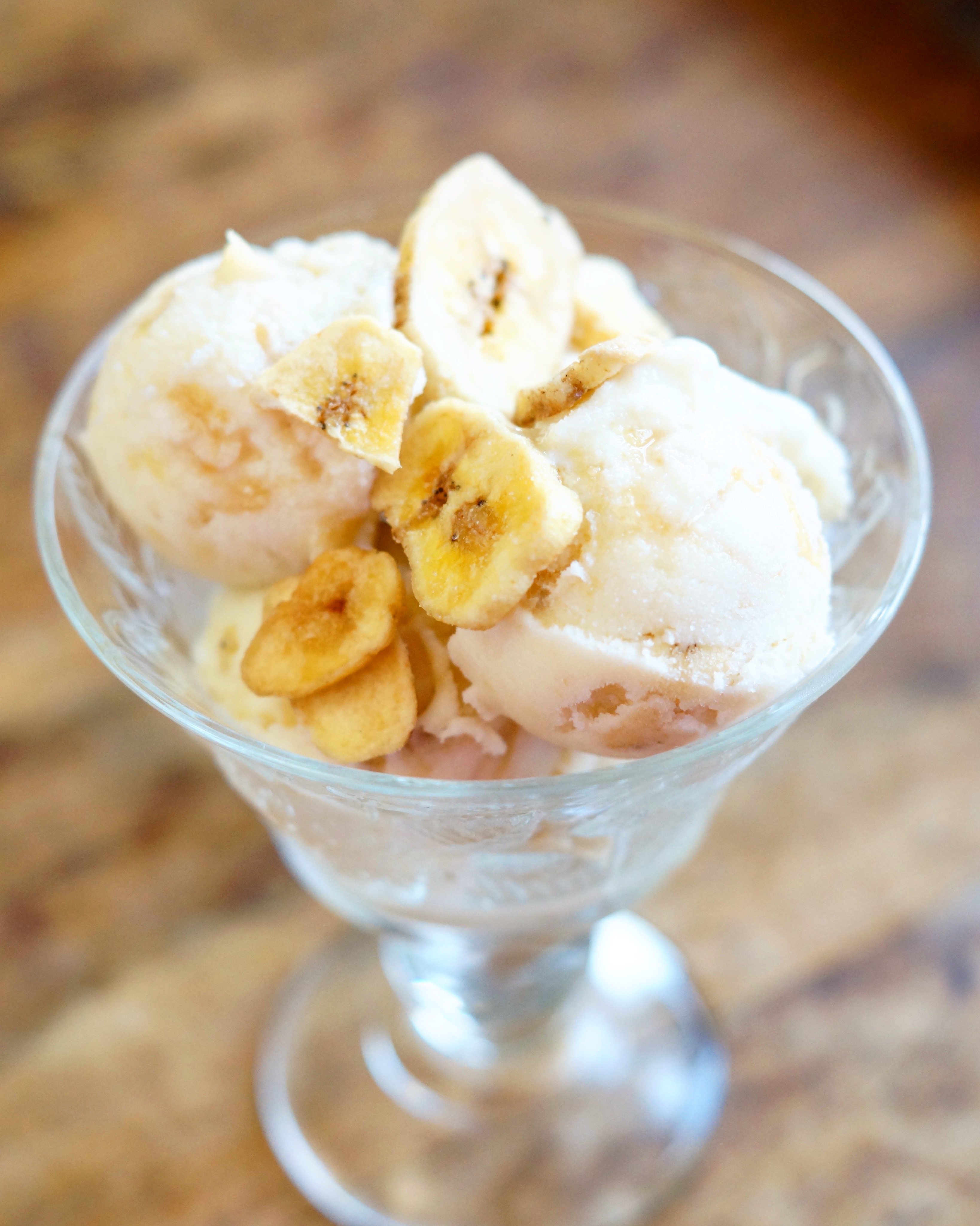 Bananen Yoghurtijs met Salted Caramel Snippers