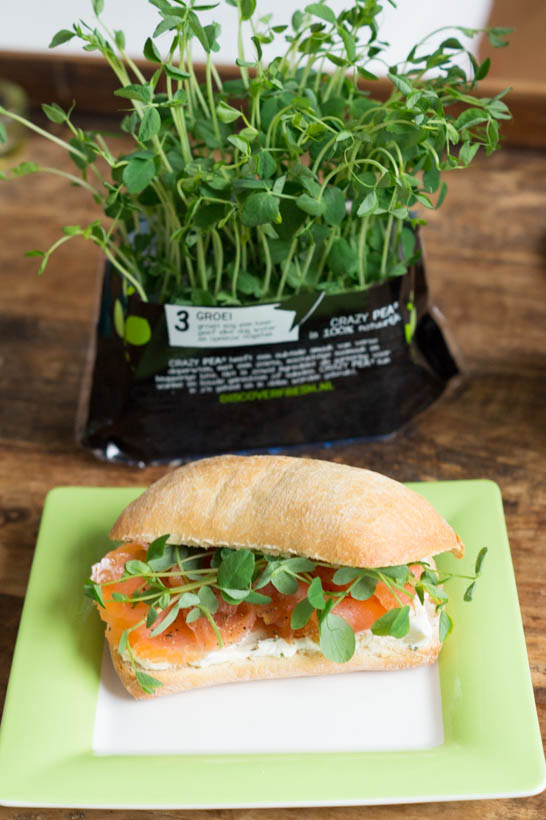 Onlangs won ik zowaar wat! Gebeurt niet zo heel vaak dus ik was erg blij. Via Joke Boon won ik 3 bakjes met Crazy Pea. Ik kende het niet maar Joke had er een artikel over geschreven en mocht er een aantal verloten. Crazy Pea is nog maar net op de markt en dus nog niet overal te verkrijgen. Maar hier kan je lezen waar wel. Om te versnellen dat er meer verkooppunten komen hebben ze een Facebookpagina waar je door middel van een Like een stem uit kan brengen om zo aan te geven dat je graag wilt dat het makkelijker verkrijgbaar wordt. Maar goed, een paar dagen later kreeg ik ze in huis. 3 plantjes in een schattig kratje. Er zat een kaartje bij met daarop een lekker recept. Die ga ik zeker nog een keer uitproberen. Het leuke van deze Crazy Pea is dat nadat je het hebt afgeknipt het weer een keer aangroeit. Dus heb je er langer plezier van. Het smaakte lekker, nootachtig en de steeltjes waren heerlijk knapperig. Ik vond het heel goed bij de gerookte zalm passen.Ingrediënten: