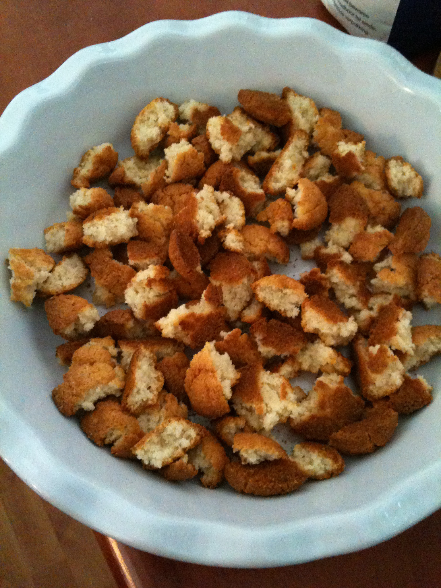 Verkruimel de bitterkoekjes in een ruime schaal (of puddingvorm).