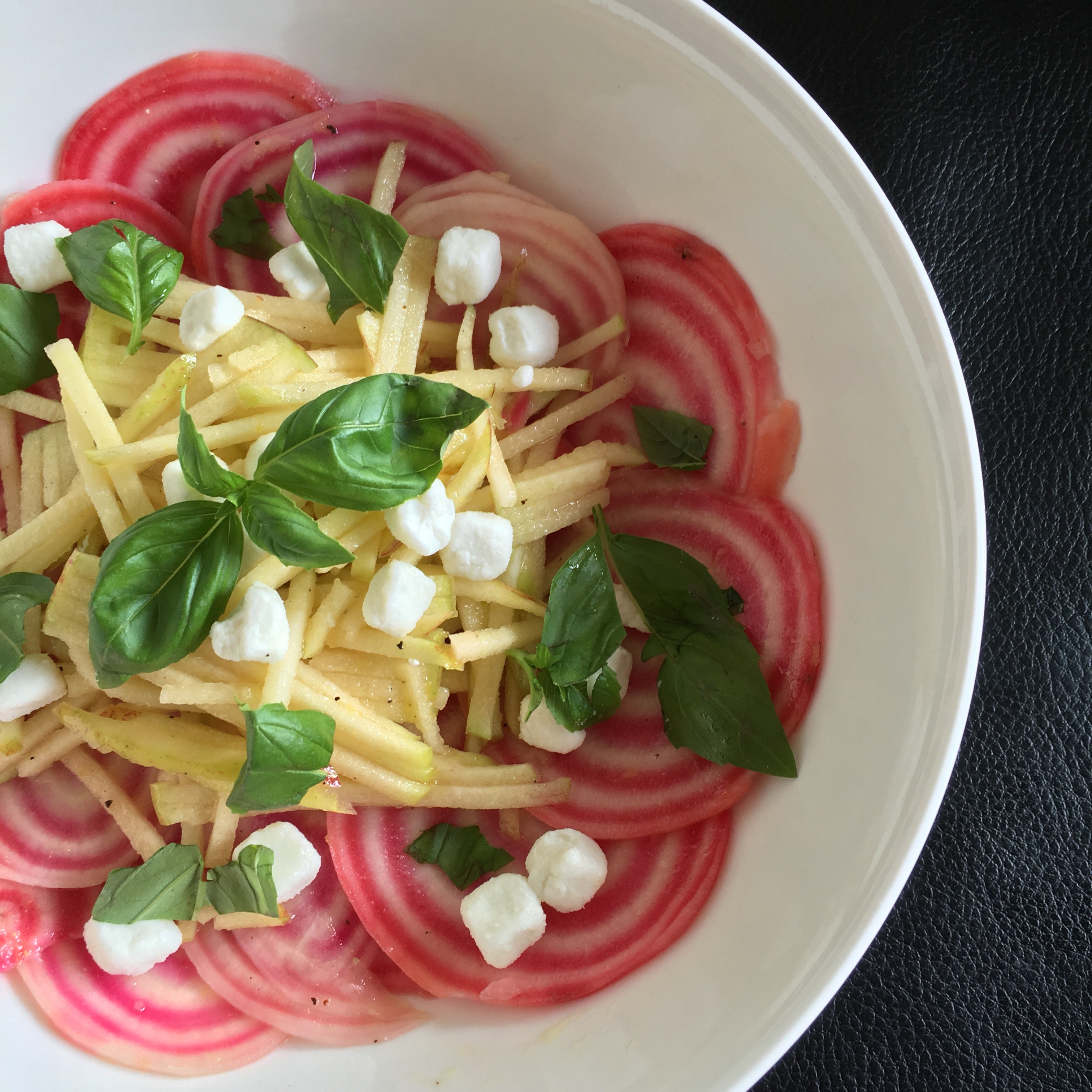 Filed Under: Lunch, Salade Tagged With: appel, basilicum, bietjes, Chioggia bietjes, Elstar, rauw, raw, salade, zachte geitenkaas, ZTRDG