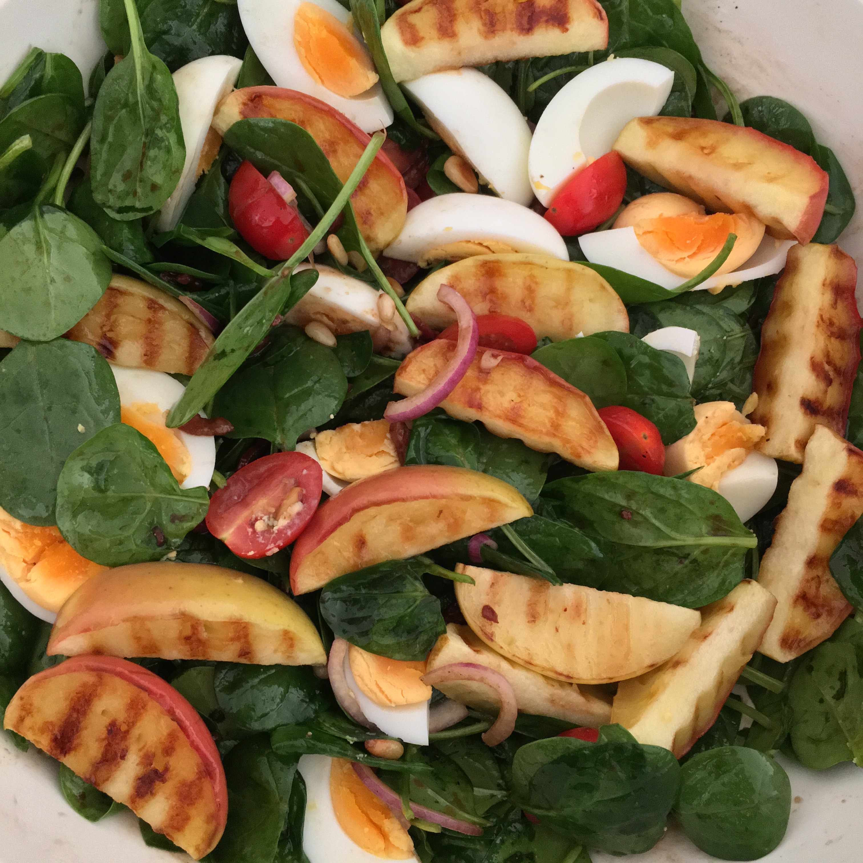 Leuk, die gegrilde appelpartjes. Ik zou zo snel niet op het idee komen om dit in een salade te verwerken, dus ik sla het wel op. Het lijkt me nl echt lekker in combinatie met bacon.