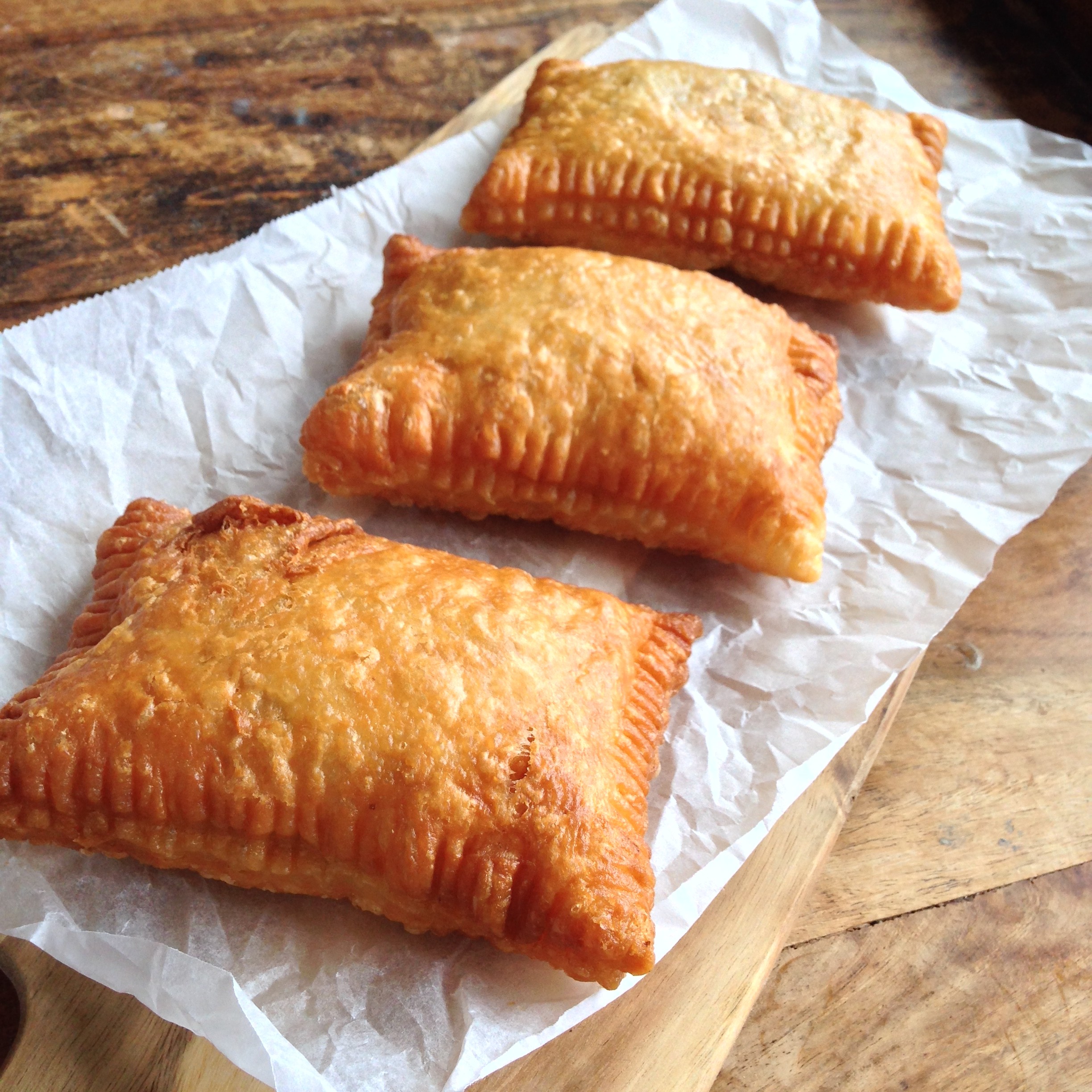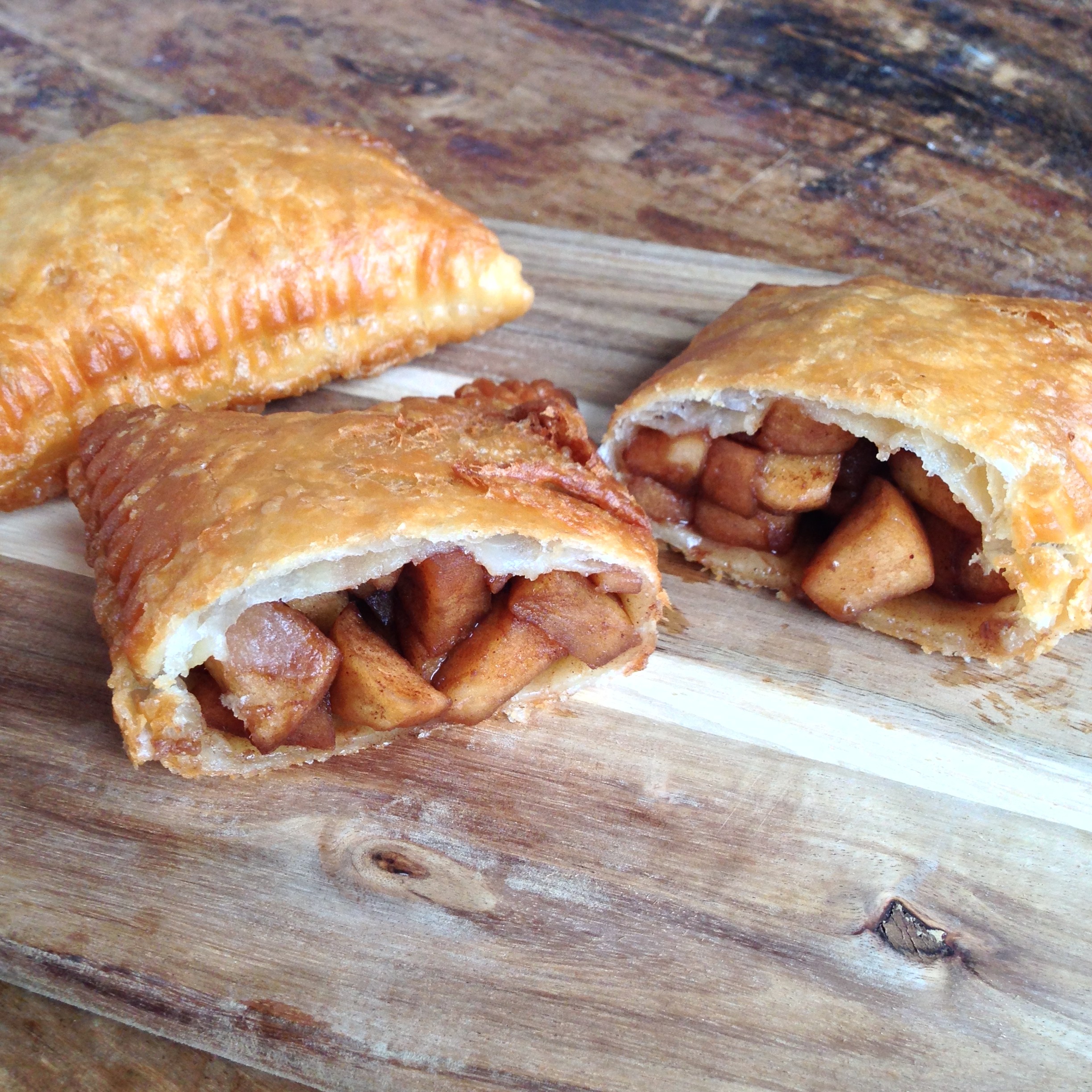 Er was een tijd dat je bij McDonalds een stukje warm appelgebak kon krijgen. Gefrituurd appelgebak, wat later gebakken appelgebak werd. Maar zeg nou zelf, gefrituurd is natuurlijk stukken slechter  lekkerder dan uit de oven gebakken. En opeens waren ze er niet meer. Veel teleurgestelde klanten die hun toetje of kopje koffie zonder hun geliefde appelgebak moesten doen. Heel eerlijk gezegd heb ik nog nooit, of ik weet het gewoonweg niet meer, zo’n appelgebak besteld. Dat weerhield me er niet van om een namaak versie ervan te maken. De combinatie van warme appel met krokant gefrituurd bladerdeeg leek me ontzettend lekker. En dat waren ze.