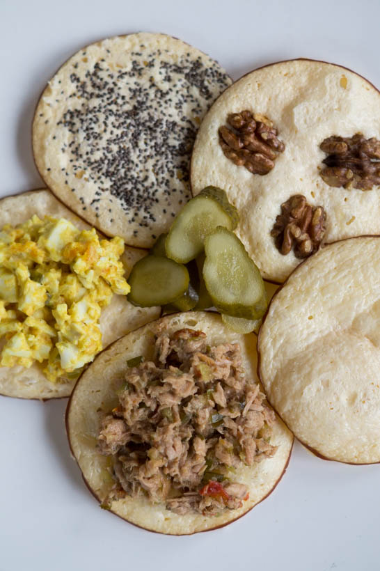 Je kan het met van alles beleggen. Maak bijvoorbeeld zelf wat eier- of tonijnsalade. Of leg er voordat ze de magnetron in gaan een paar walnoten op. Die smelten dan in de kaas. Chia zaad kan ook. Sommigen besmeren het met boter en leggen er plakjes kaas op. Dubbel kaas dus. Het kan allemaal.Â