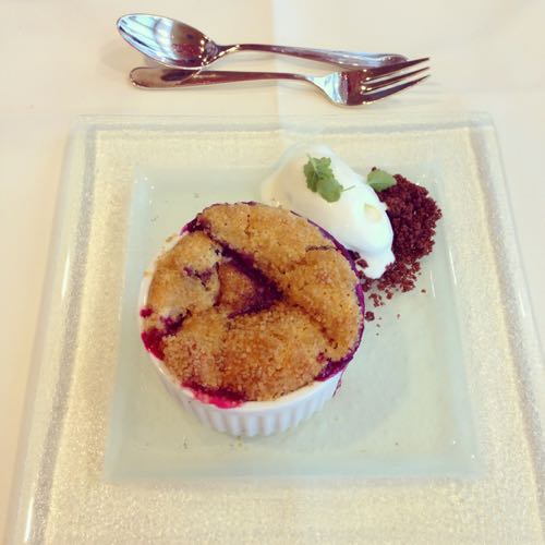 Als dessert maakten we een Cobbler van rode vruchten met geitenyoghurt ijs. Het ijs werd natuurlijk gedraaid in de ijskom van KitchenAid.