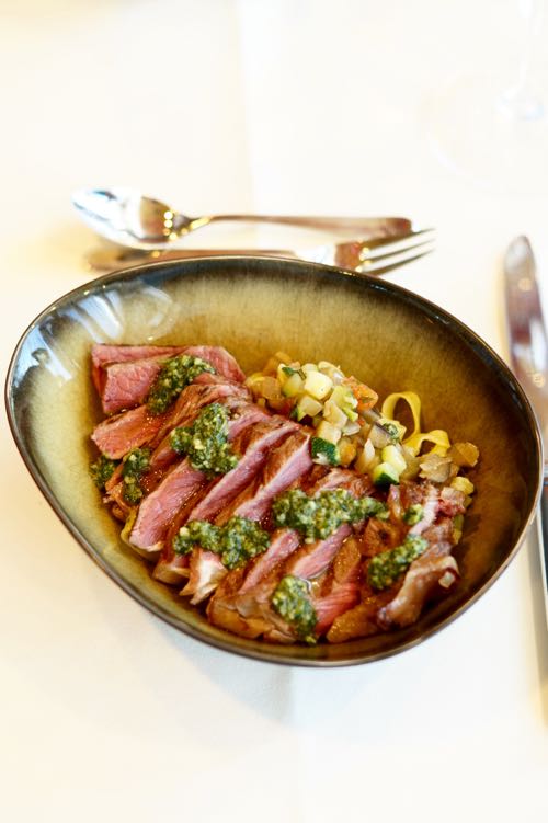 De Vitamix is vrij nieuw in Nederland. Het is een blender met heel veel power die een soepje in 6 minuten glad èn gaar en dus bloedheet draait. Met de KitchenAid draaiden we verse pasta. Op de grillpan van Le Creuset grilden we een mooie kalfsentrecote die geserveerd werd met een pesto die ook in de Vitamix gemaakt werd.