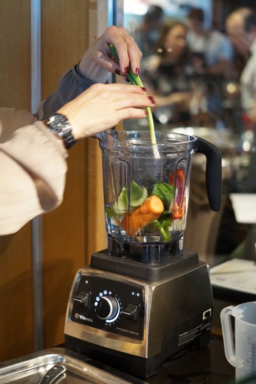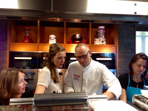 Maar dat was natuurlijk niet de bedoeling. We waren daar ook om te koken. In de grote keukens mochten we in groepjes koken met de mooie apparaten van KitchenAid, Le Creuset en Vitamix. In het begin werd uitgelegd wat we gingen maken en welke apparaten we gingen gebruiken. En niet geheel onbelangrijk, hoe we het moesten gebruiken.