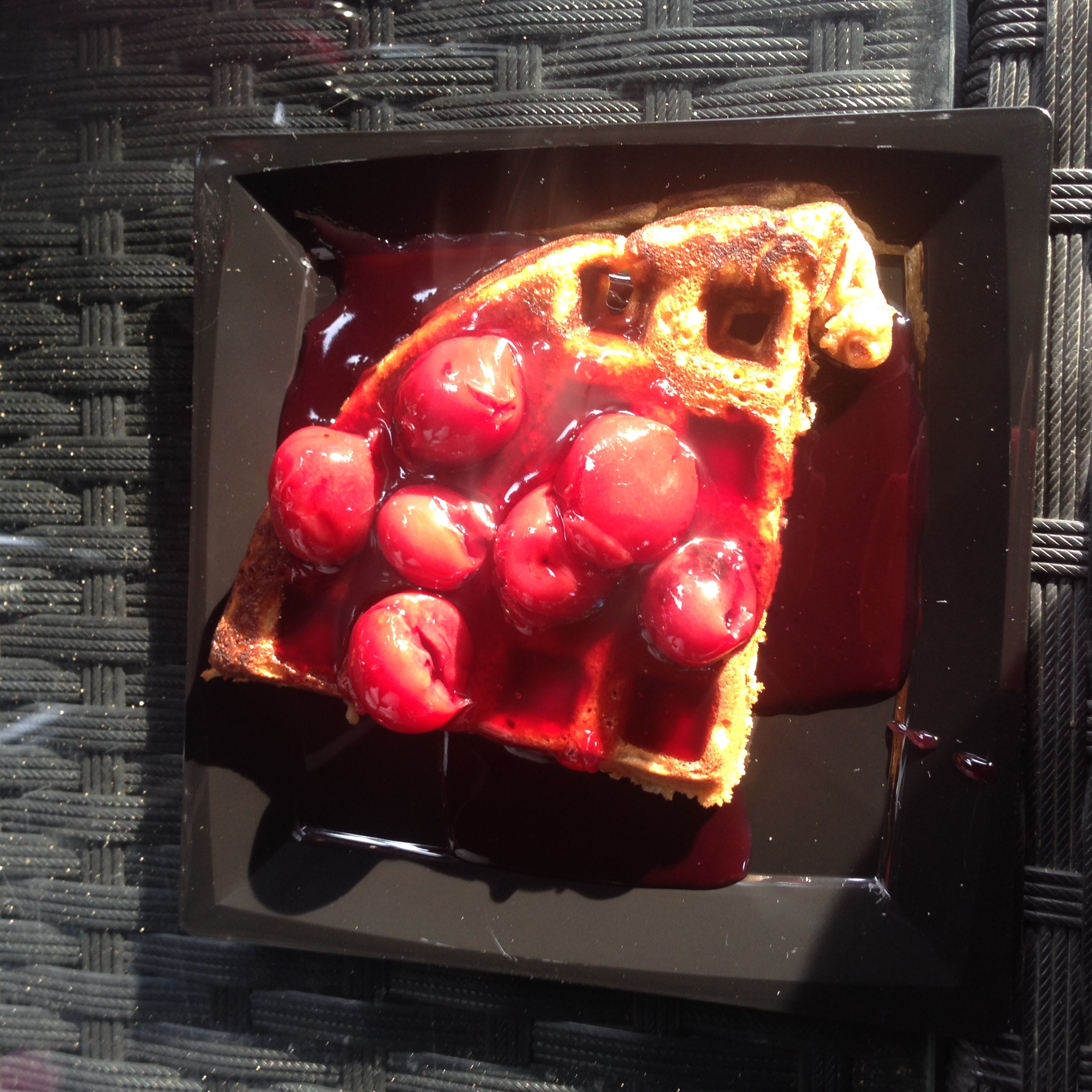 En als afsluiter werden er wafels gebakken. Want ja Weber zou Weber niet zijn als ze daar ook niet een accessoire voor hadden. Wafels met geraspte appel in het beslag en warme kersen. Een prima afsluiter van een gezellige en smaakvolle middag.