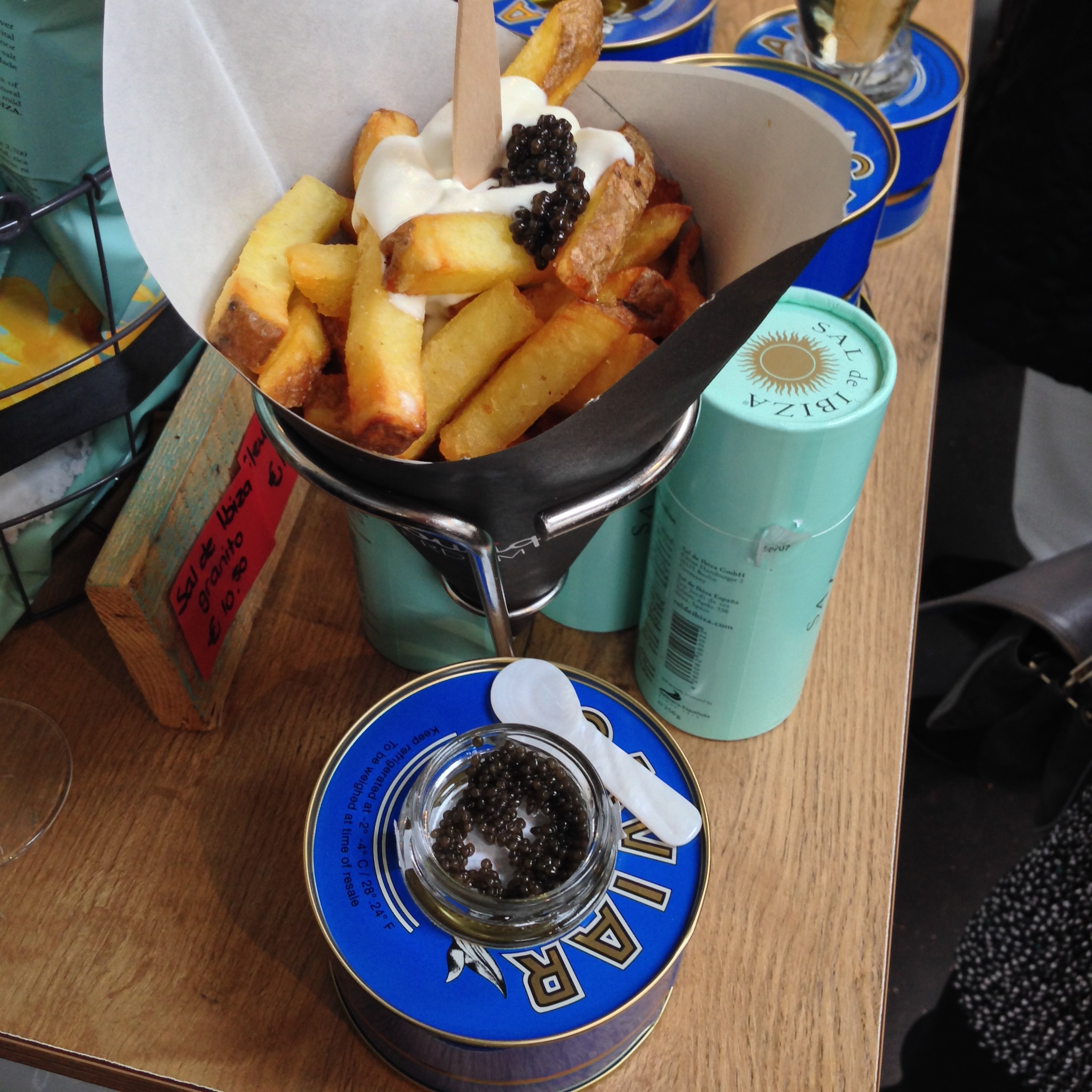 Je kan nu bij de Frietboutique, op de Johannes Verhulststraat 107 in Amsterdam, een frietje bestellen met 10 gram kaviaar en een flinke dot crème fraîche. Een flinke puntzak biologische frietjes met kaviaar bovenop. En daarnaast een bakje kaviaar wat je, wanneer je bijna bij de bodem van de zak bent, er over kan lepelen. Een moderne versie van de Pomme de Terre. Ik vond het leuk gevonden.