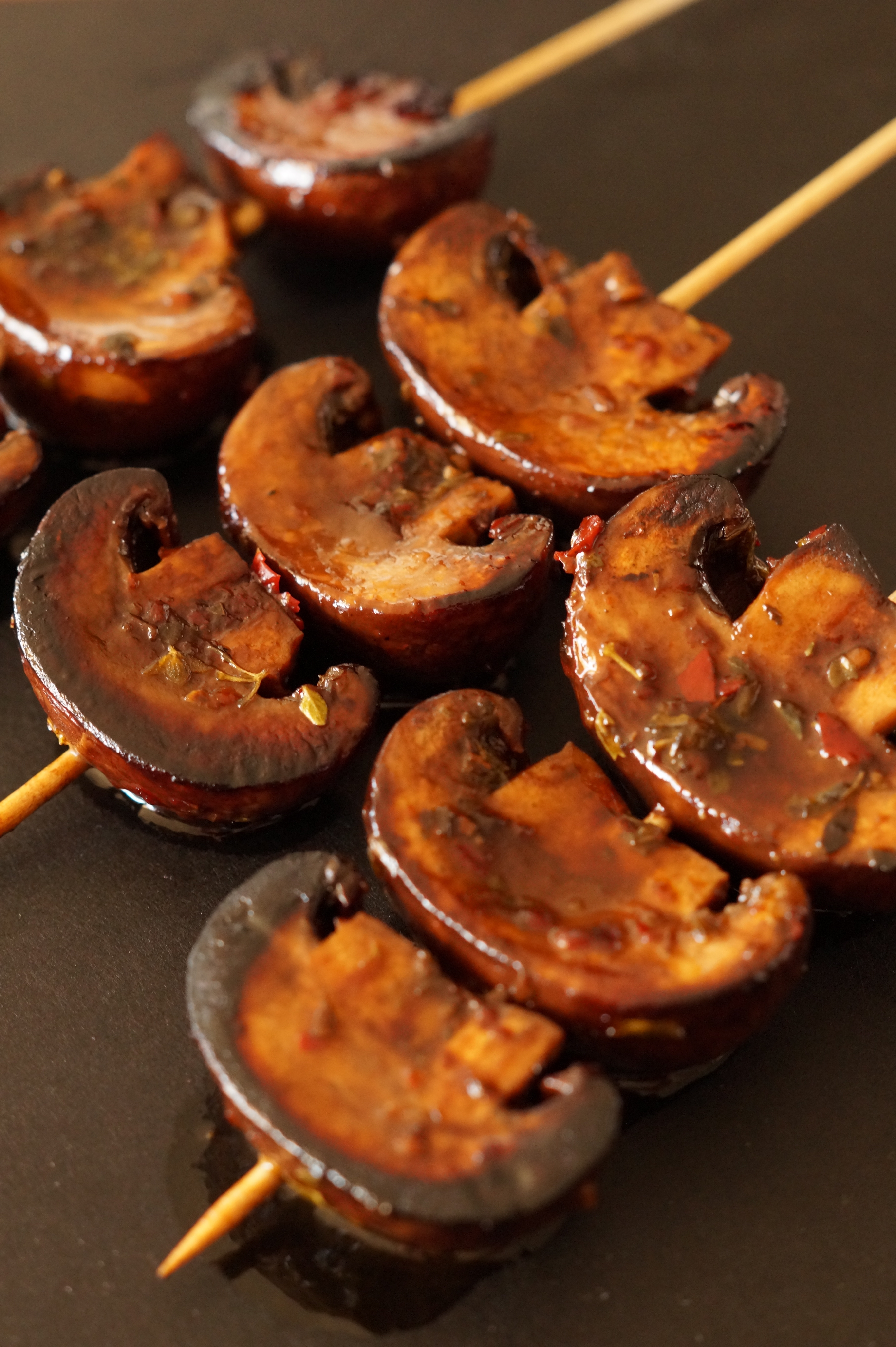 Zoals je kan zien zijn de eerste champignons een stuk donkerder dan die eronder zitten. Dit doordat ik ze moest aandrukken om allemaal de plaat te laten raken.