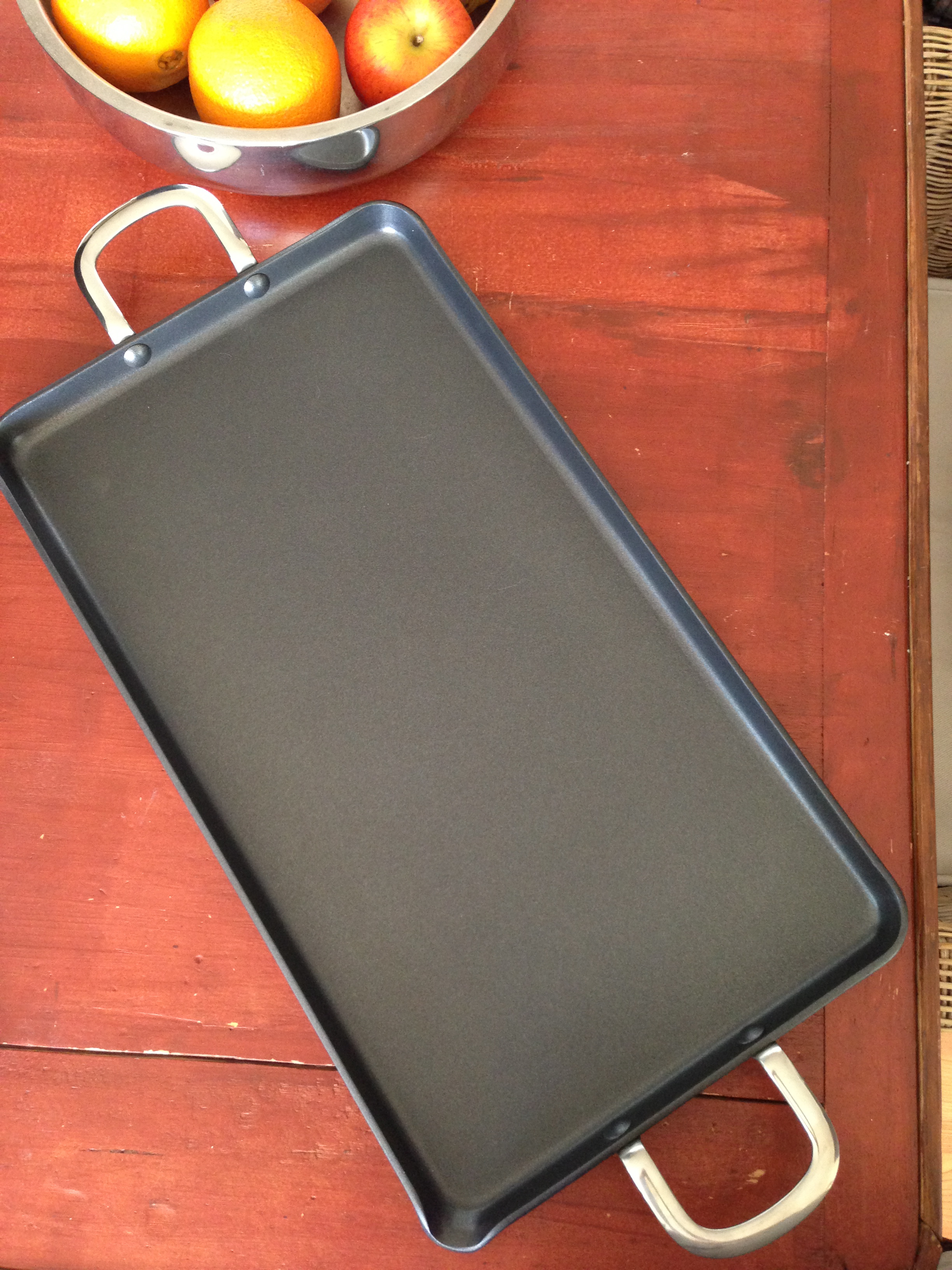 De plaat heeft in één hoek een schenktuit om eventueel vet of vocht af te gieten. Er zijn 2 handvatten aan de kopse kanten. Die overigens wel heet worden tijdens het bakken. Wat ik ook wel een nadeel vond was dat doordat de plaat vrij licht van gewicht is hij makkelijk kan schuiven op je fornuis. Maar na gebruik is hij weer super makkelijk schoon te krijgen. Gewoon met een afwasborstel onder de kraan of zelfs in de vaatwasser. Met het handje gaat sneller.