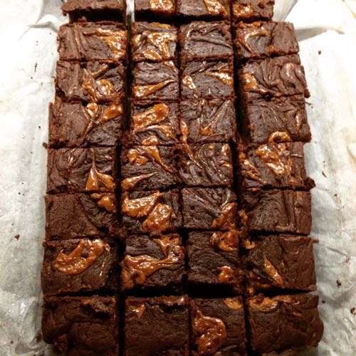 Deze keer hadden ze trek in iets zoets, iets met chocola. Brownies bijvoorbeeld. Nou ok, ik vind het prima om dat te maken. Dus ik ging op zoek naar een lekker recept. Meestal maak ik de brownies van Bill Granger maar onlangs zag ik Dulce de Leche brownies bij Marina van Marina’s Bakery voorbij komen. Volgens haar een ontzettend lekker recept. Dus die gingen het worden.