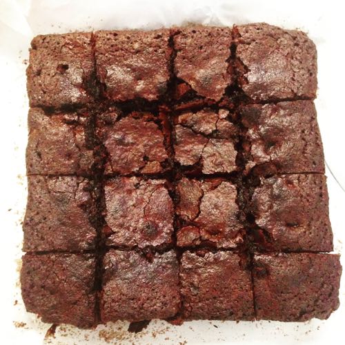 - Laat de brownie volledig afkoelen voordat je hem uit de vorm haalt en in stukjes snijdt.