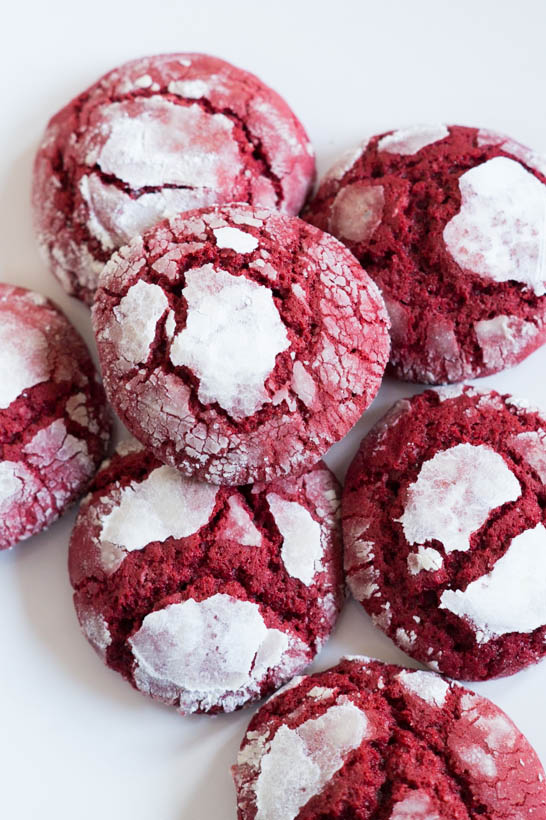 Een tijd geleden had ik al eens Chocolate Crinkle Cookies gemaakt die, logischerwijs, bruin waren. In deze rode zit ook cacaopoeder en dat proef je ook maar daar zie je dus niets van.