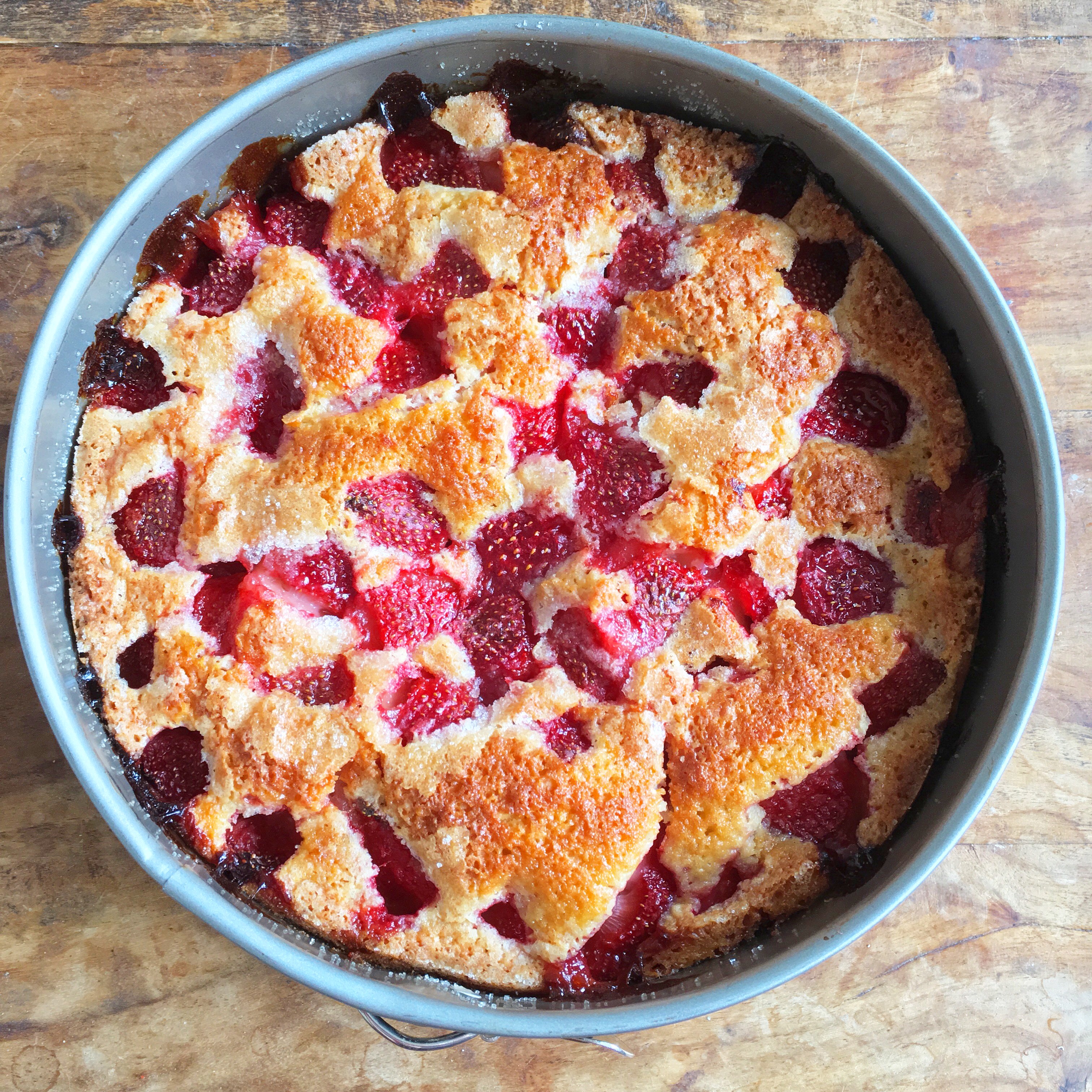Als je wilt dat je hele huis heerlijk naar aardbeien gaat ruiken moet je absoluut deze cake maken. Bovendien is hij ook nog super lekker.